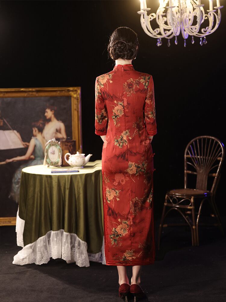 ・カテゴリ: チャイナドレス・スタイル: 中国風、レトロ・主な素材: ポリエステル80%以上・ネックライン: スタンドカラー・袖丈: 五分袖・柄: デジタルプリント・スリット: ハイタイプ・対象: 大人、女性・サイズ展開: M、L、XL、XXL、XXXL、4XL、5XL