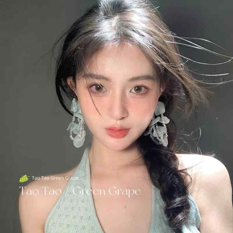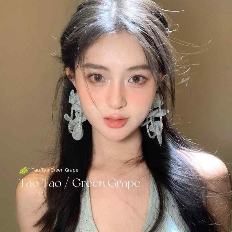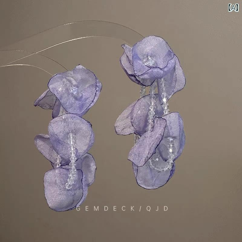 ピアス リゾート風 ミントグリーン 水晶の花飾り フリンジ付き 大ぶり 高級感 個性的なデザイン オーガンジー