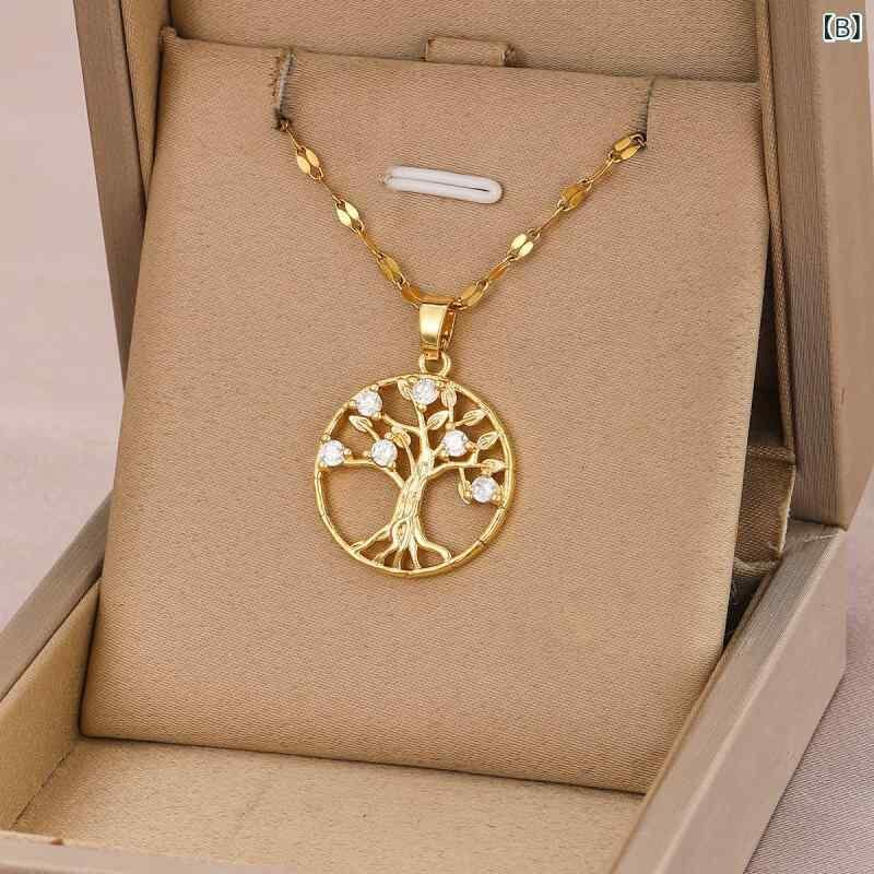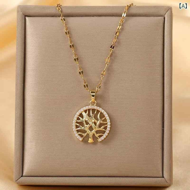 ネックレス レディース 女性用 欧米風 エレガント 上品 高級感 円形 透かし彫り 生命の樹 ジルコニア メタル ペンダント 鎖骨ネックレス 幾何学モチーフ 通勤 デイリー カジュアル