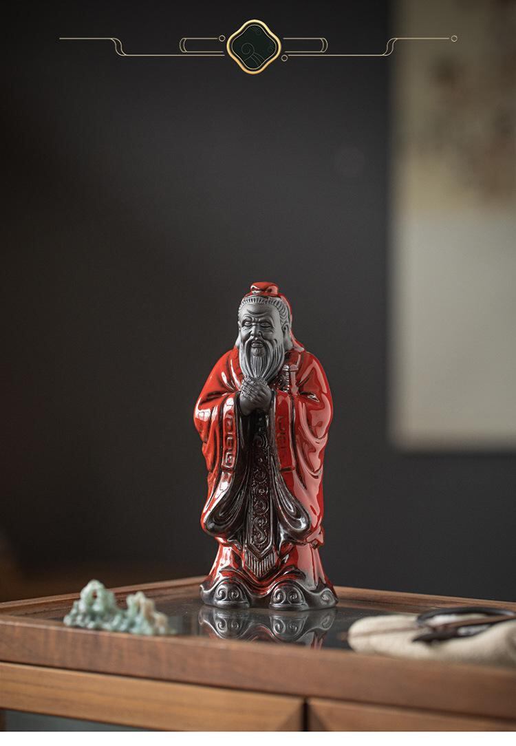 置物 孔子 陶磁器製 彫像 中国風 禅意 インテリア 書斎 机 飾り棚 装飾品 チャイナレッド 高級感 精巧 歴史人物 美術工芸品 リビング 和室 オフィステーブル用 ギフト 記念品 六角台座付き