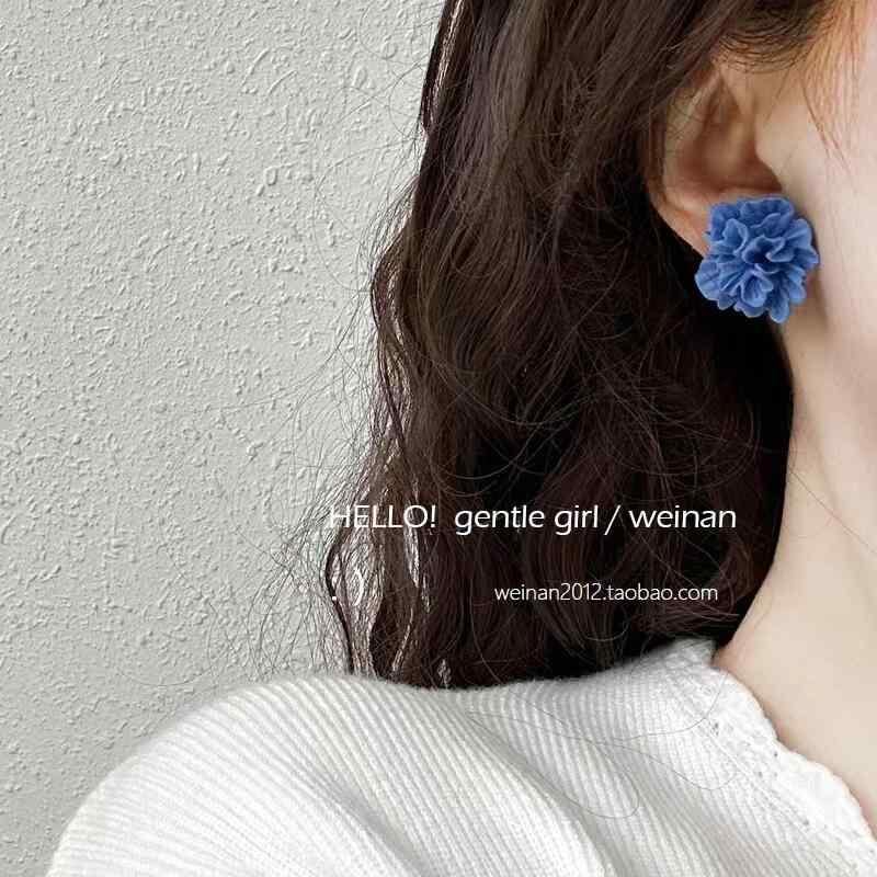ピアス レディース ブルー 立体プリーツ フラワー 個性的 ユニークデザイン 高級感 シンプル 繊細 アクリル カメリア 韓国風 フェミニン イヤリング