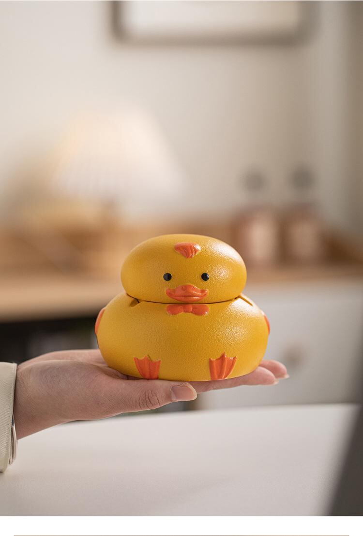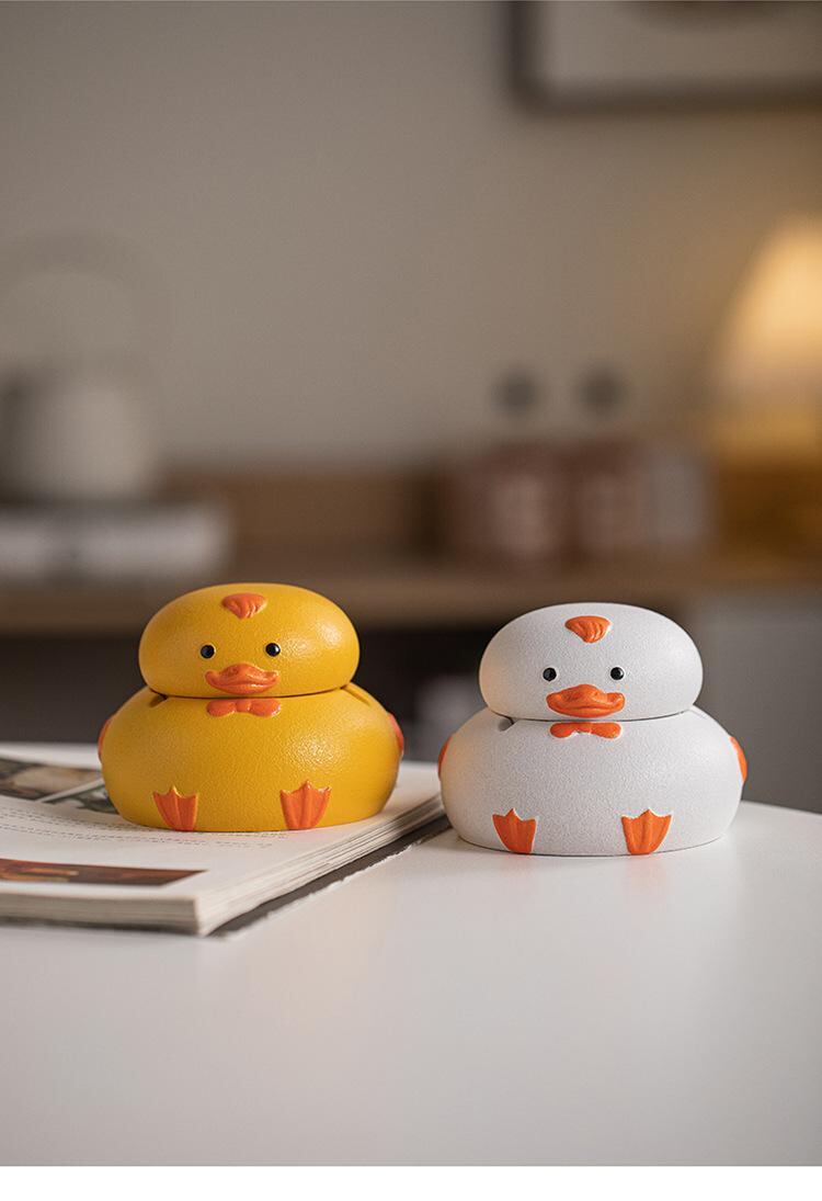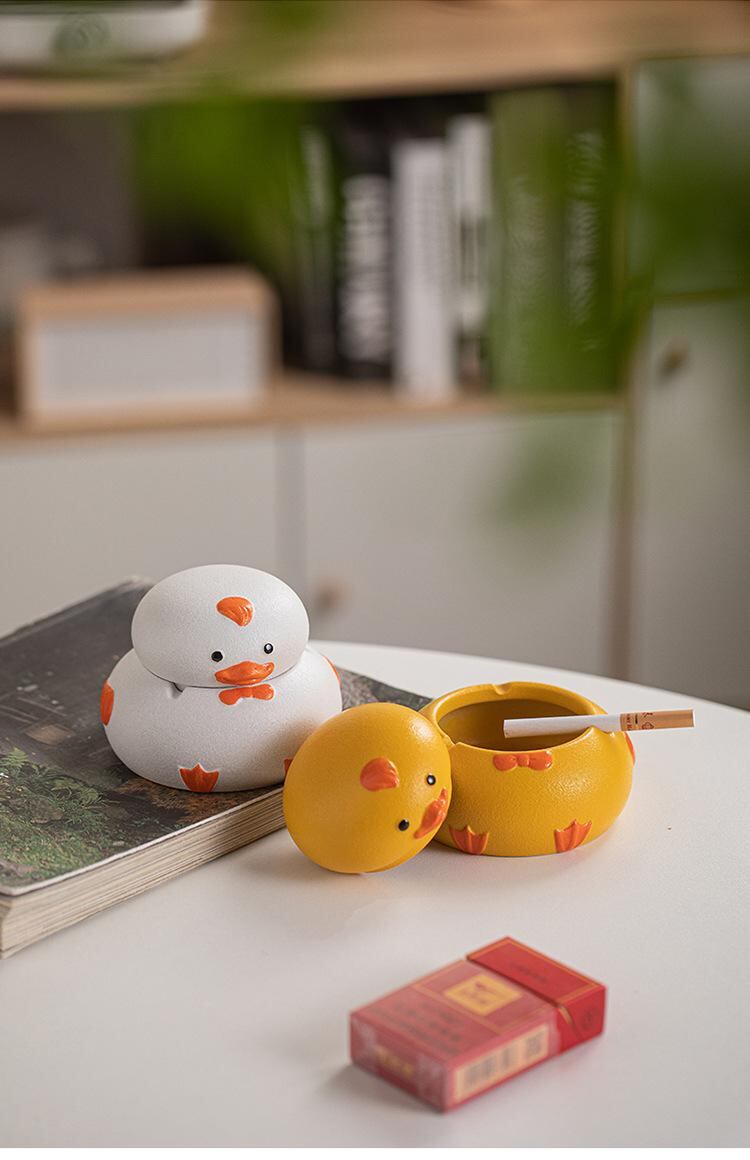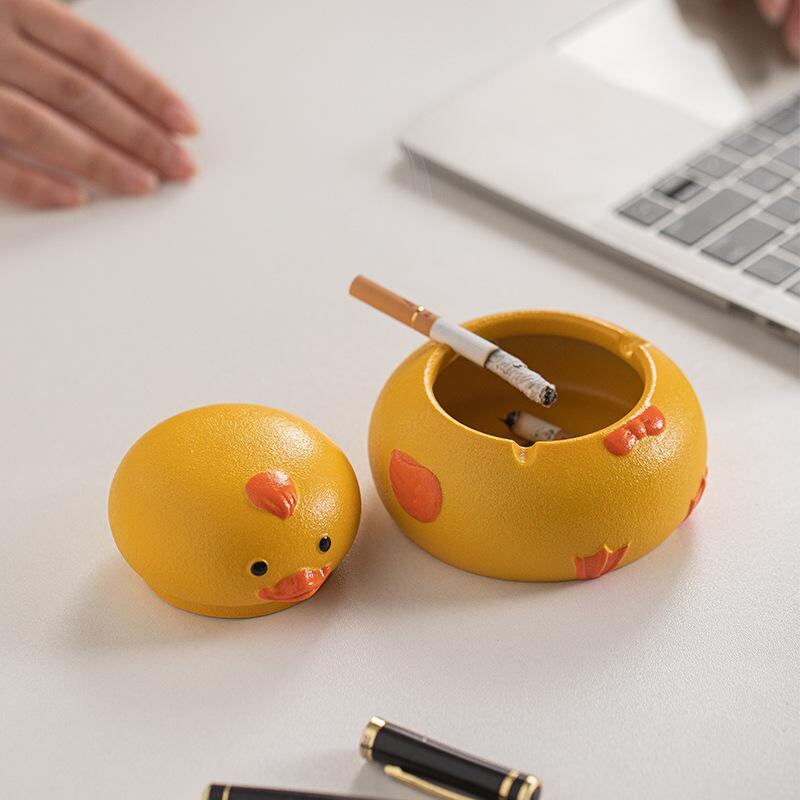 灰皿 男性 かわいいアヒル 陶器製 フタ付き 防風 灰飛散防止 家庭用 室内 オフィス 卓上 置物 おしゃれ インテリア イエロー ホワイト