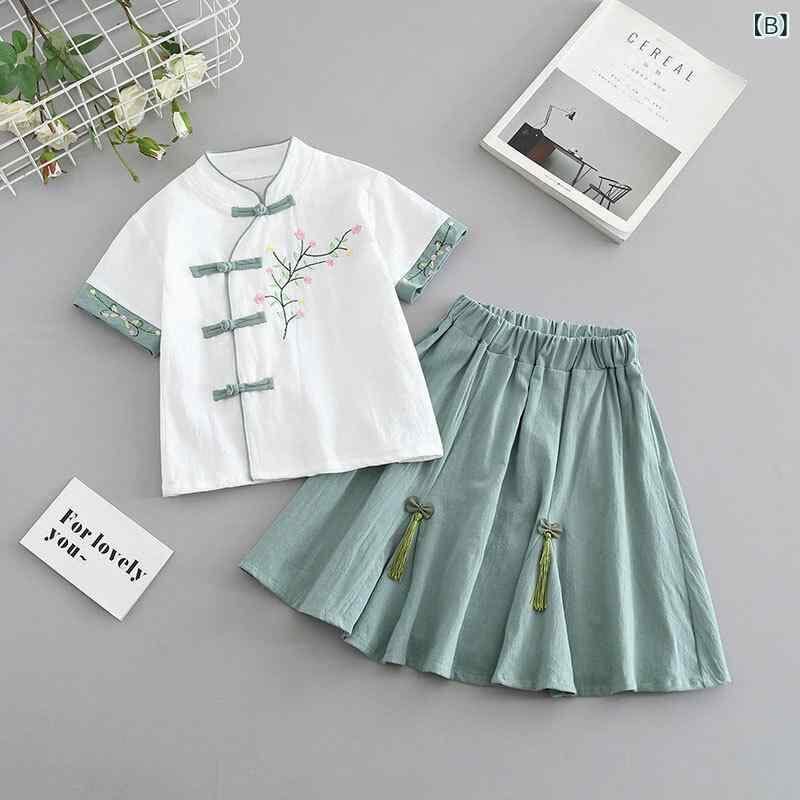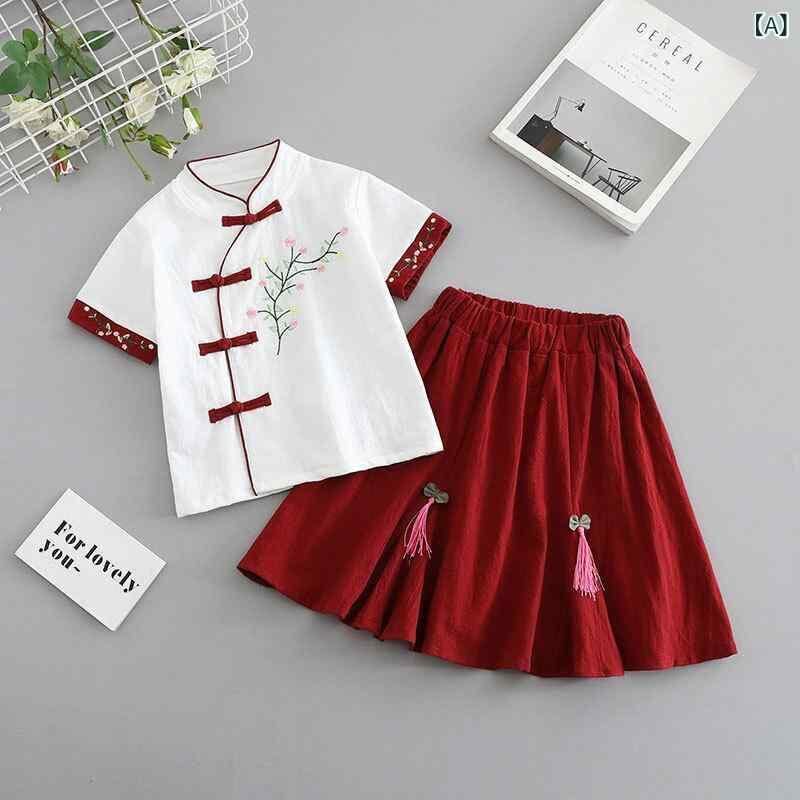 唐装 子供用 女の子 中国風 民族衣装 プリンセスドレス セットアップ 綿100% 柔らかい肌触り 夏 発表会 イベント 普段使い キッズ ワインレッド グリーン