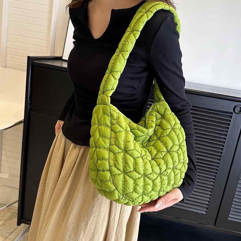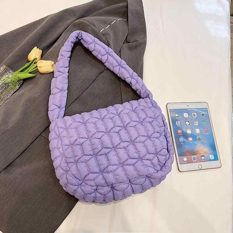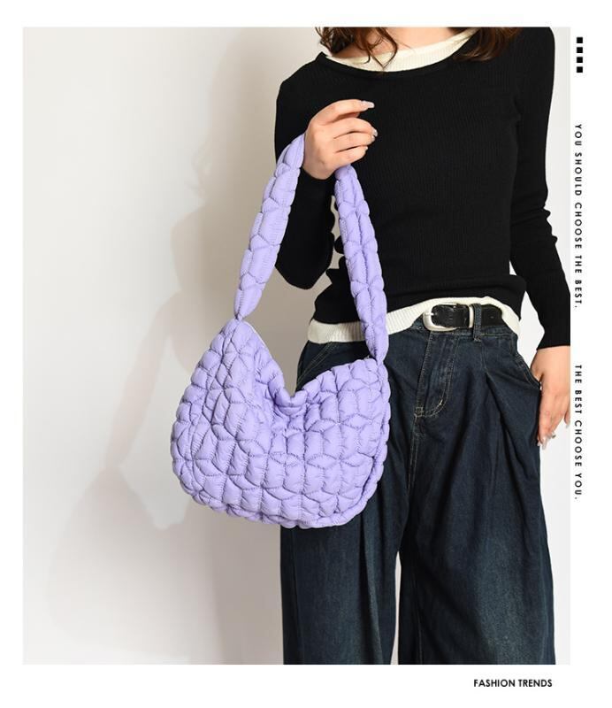 バッグ レディース 大容量 キルティング クラウドバッグ ワンショルダー 斜め掛け 肩掛け 普段使い デイリーユース ソフトタッチ 横長スクエア型 ふっくら 立体感 ファスナー開閉 多機能ポケット