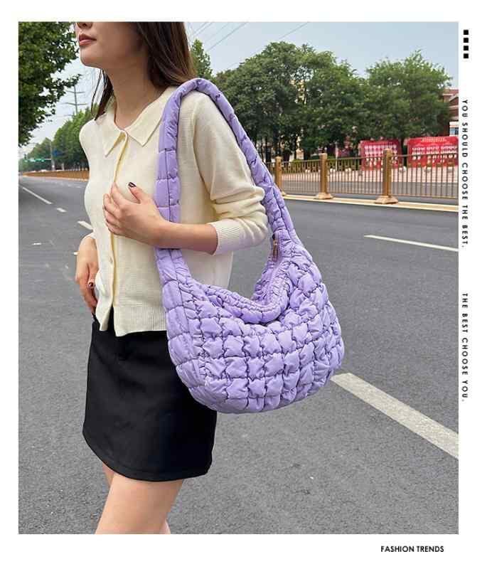 トートバッグ レディース パデッドナイロン ギャザー 雲バッグ 餃子バッグ 大容量 ソフト ファスナー開閉 デイリーユース おしゃれ 肩掛け ハンドバッグ ミディアム スクエア 横型