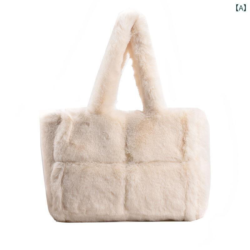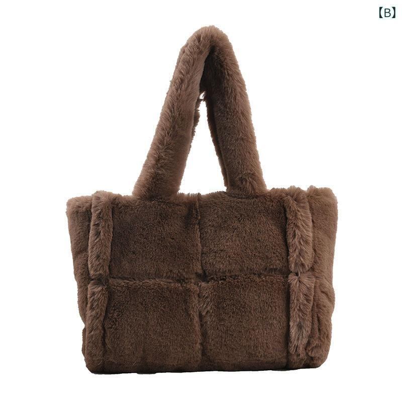 バッグ レディース トートバッグ ショルダーバッグ ハンドバッグ 大容量 上質感 シンプル ファー もこもこ チェック柄切り替え 普段使い デイリーユース 横長 スクエア型 マグネット開閉 内ポケット付き