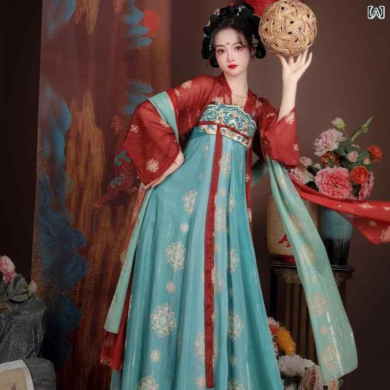 漢服 レディース 唐代スタイル 中国風 斉胸襦裙 セットアップ 刺繍 ジャカード 立体装飾 シフォン ポリエステル 普段使い 学生向け 優雅 華やか