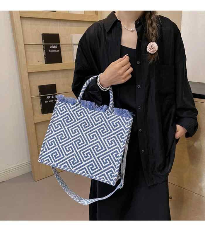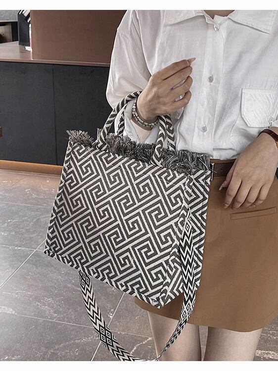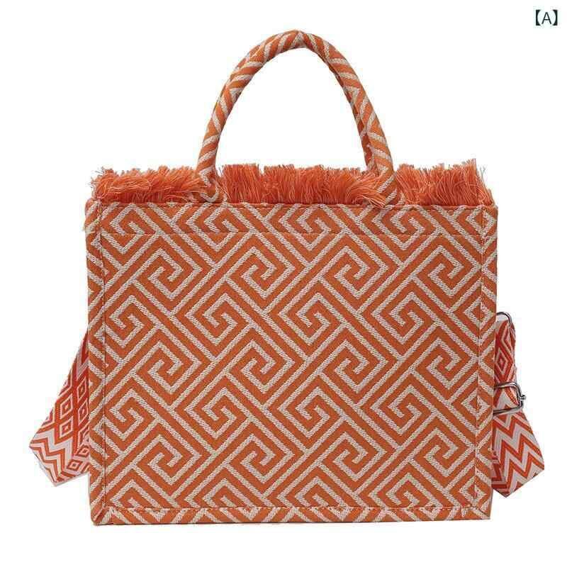 トートバッグ レディース 普段使い 通勤 フリンジ 刺繍 個性派デザイン キャンバス ショルダーバッグ 斜め掛け ハンドバッグ 大容量 横型 スクエア オレンジ ブラック ブルー