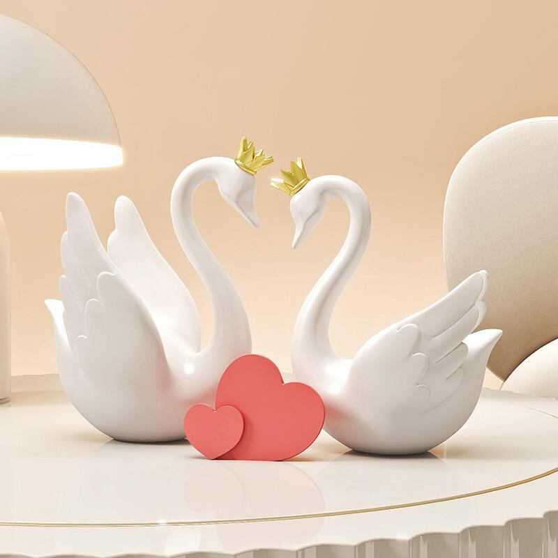 置物 カップル 白鳥 オブジェ スワン 新婚 夫婦 結婚祝い 新築祝い 引っ越し祝い プレゼント ギフト 樹脂製 ハンドペイント モダン リビング インテリア 装飾品 ピンク ホワイト レッド