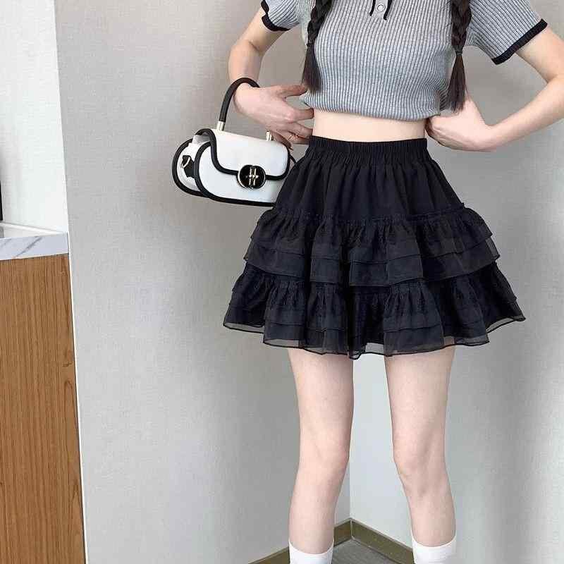スカート レディース ハイウエスト ミニスカート 夏 チュール レース ティアードスカート ふんわり ボリューム 体型カバー 細見え効果 バレエ風 ピュアフェミニン 大きいサイズ ポリエステル 白 黒