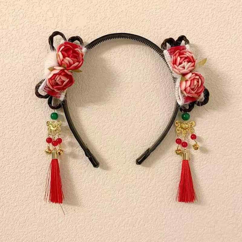 カチューシャ キッズ 女の子 ベビー 赤色 タッセル 和風 和柄 古典柄 縁起物 布製 手作り お正月 初詣 七五三 ひな祭り 晴れ着 和装 華やか