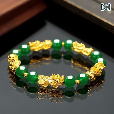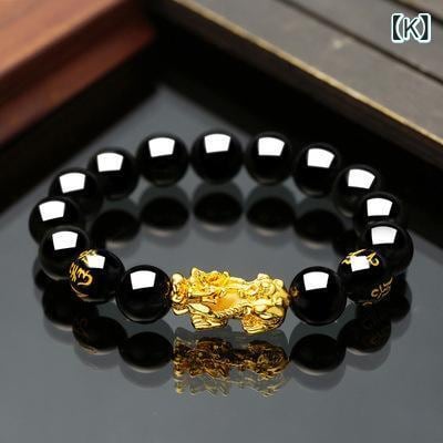 ブレスレット メンズ レディース 貔貅 オブシディアン パワーストーン 3D加工 ゴールドカラー 財運 金運 ラッキーアイテム 色褪せにくい 耐久性