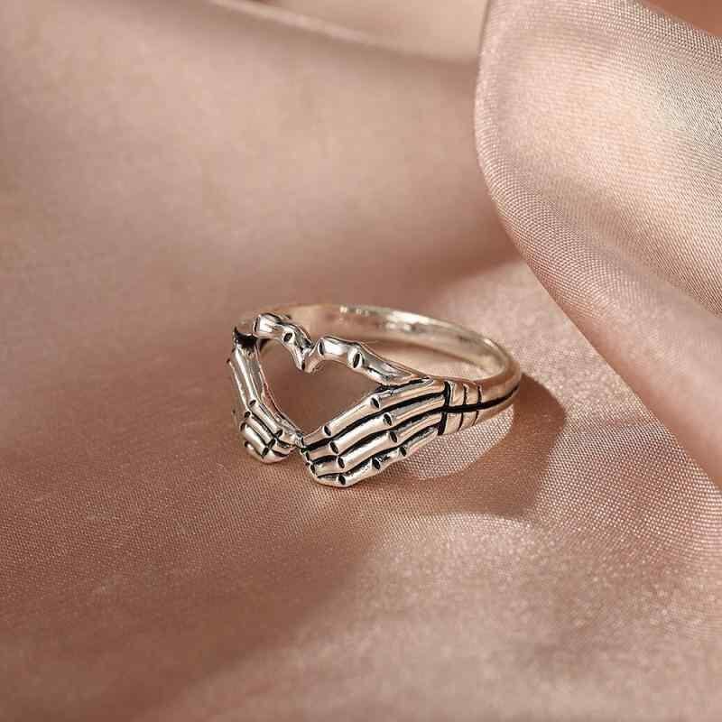 リング 男女兼用 スカル ドクロ 5本爪 個性的 おしゃれ ヒップホップ ストリート インスタ風 パンク ロック ダーク系 アンティークシルバー 合金 フリーサイズ サイズ調整可能 ヴィンテージ加工 レトロ