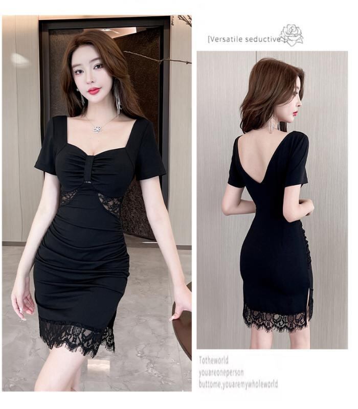 ワンピース レディース エレガント パーティードレス ナイトドレス レース Vネック 半袖 スリムフィット タイトシルエット ミニ丈 フォーマルシーン お呼ばれ 結婚式 二次会 ブラック ポリエステル素材 細見え 華やか
