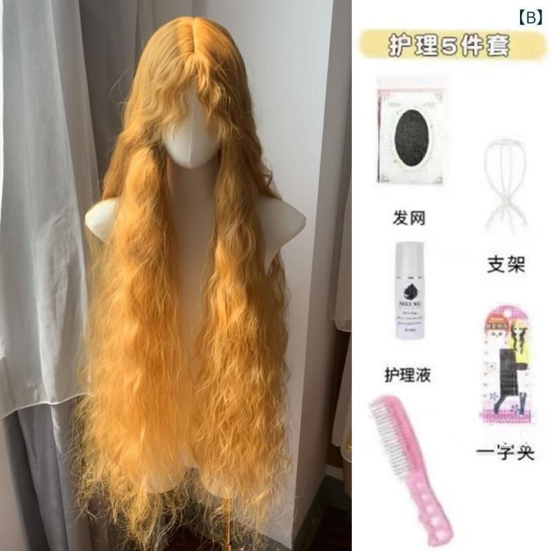 ウィッグ レディース 金髪 ゴールデンイエロー 羊毛風カール ロング ルーズウェーブ フルウィッグ 欧米風 ロリータ 無造作 ふわふわ ボリューム 長め前髪 耐熱ファイバー 軽量 通気性 自然な雰囲気 高品質