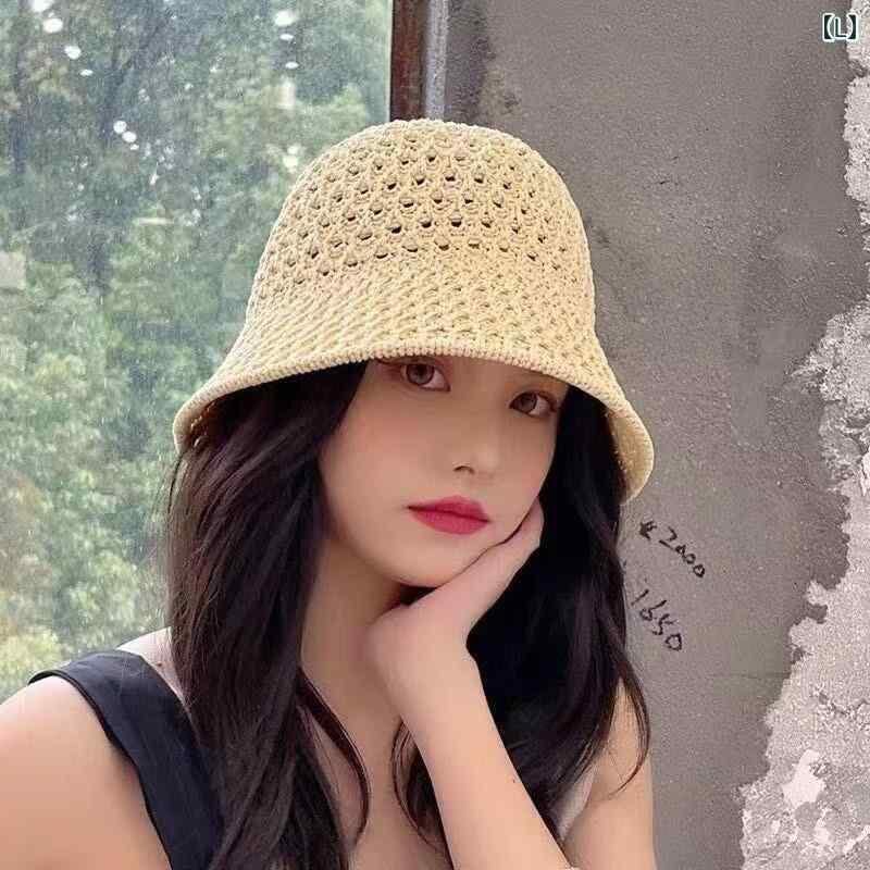 バケットハット レディース 小顔効果 つば広 UVカット 日よけ 通気性 手編み 麦わら素材 ポリエステル 夏用 おしゃれ カジュアル リゾート アウトドア ブラック ベージュ