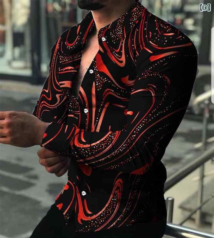 シャツ メンズ 長袖 トップス 小花柄 プリント 開襟シャツ スリムフィット カジュアルスタイル 普段使い リゾートウェア ポリエステル混紡 伸縮性 洗濯可能 春秋