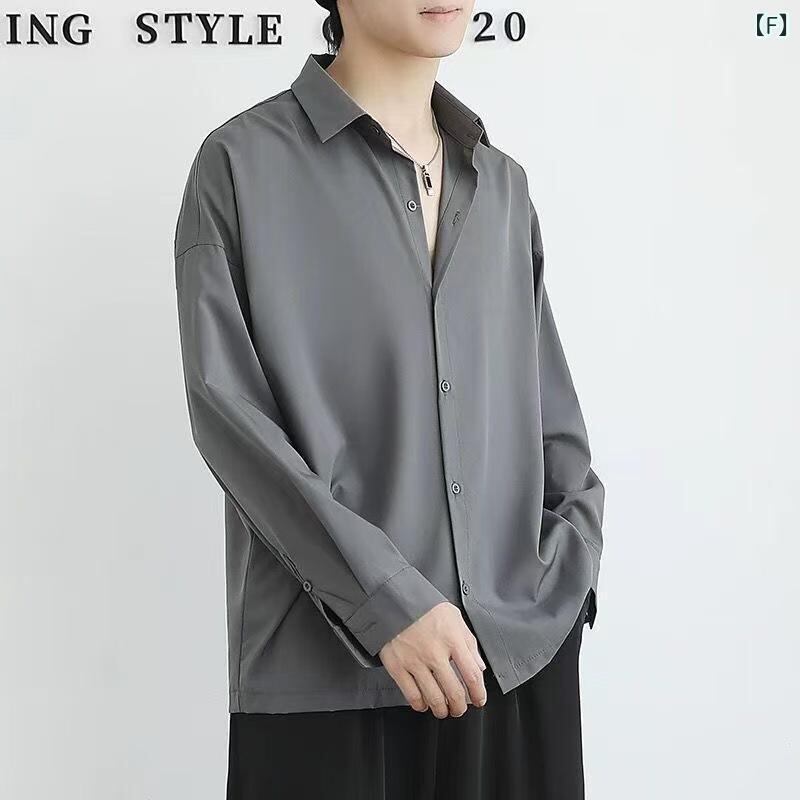 シャツ メンズ 半袖 薄手 高級感 ドレープ感 港風ストリートカジュアル ポリエステル ストレッチ性 ルーズフィット イージーケア シワになりにくい