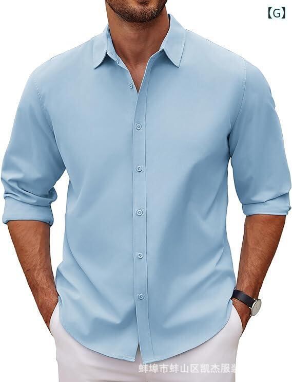 シャツ メンズ 長袖 レギュラーカラー 無地 ポリエステル ストレッチ 吸水速乾 通気性抜群 ウォッシャブル アイロン不要 スリムフィット カジュアル ビジネス オフィス 普段使い 白 黒 紺