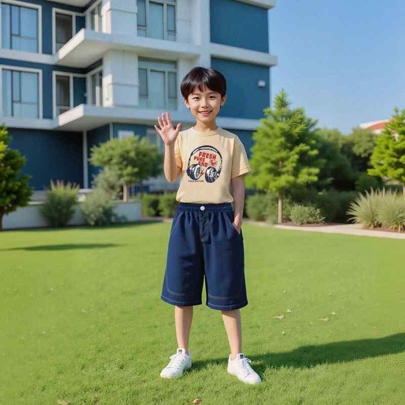 デニムパンツ 男の子 キッズ ジュニア 夏物 五分丈 薄手 軽量 カジュアル 普段使い 通学 トレンド コットンブレンド ミドルウエスト ゴムウエスト