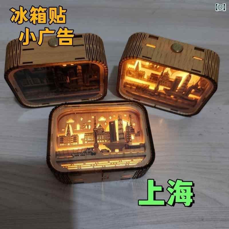 冷蔵庫マグネット 立体 木製 木彫り ライト付き 旅行記念 観光土産 ビジネス会議用 ギフト 贈答品 中国風 インテリア 室内装飾 飾り 家族 友人 同僚向け