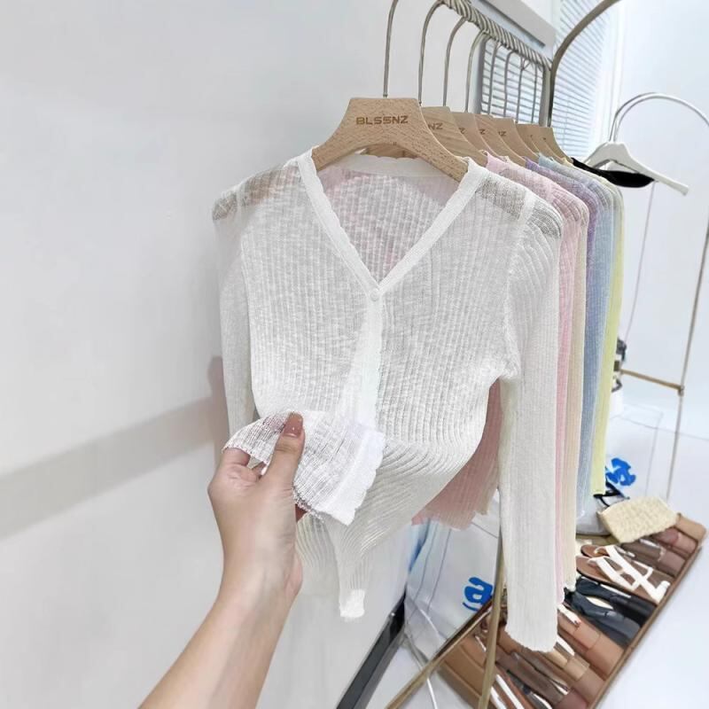 ニットカーディガン レディース Vネック ショート丈 長袖 薄手 接触冷感 UVカット UPF50+ 上品 冷房対策 オフィス カジュアル 普段使い 羽織り 細見え 若見え スリムフィット
