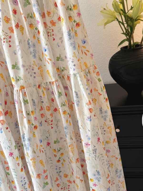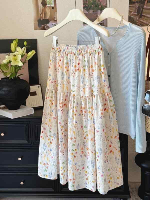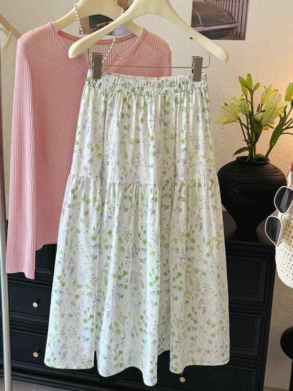 スカート レディース ミモレ丈 フレアスカート モネ風 小花柄 花柄プリント コットンライク 綿混 清涼感 リラックス カジュアルスタイル 上品 普段使い