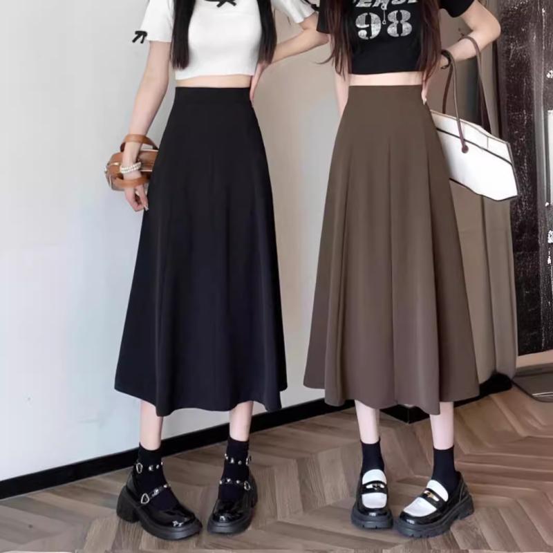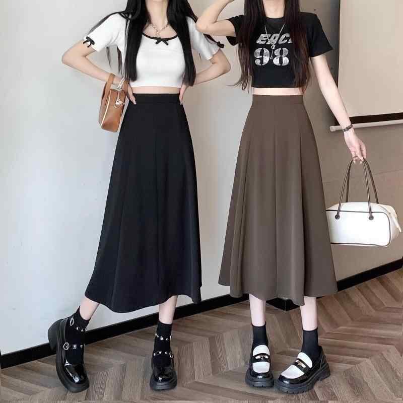 スカート レディース ハイウエスト Aライン フレアスカート ミモレ丈 ドレープ感 ポリエステル 黒 ブラック シワになりにくい 小柄 細見え 体型カバー オフィス カジュアル きれいめ