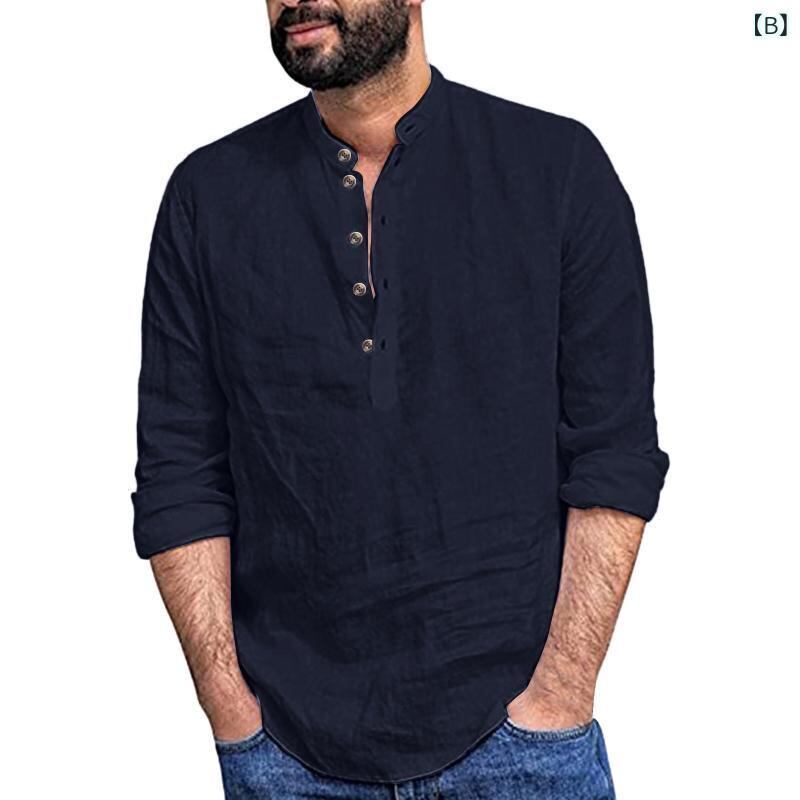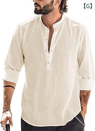 シャツ メンズ ゆったり リラックスフィット スタンドカラー 長袖 綿麻 綿混 60番手 通気性 吸湿速乾 無地 大人カジュアル 普段使い ビジネス きれいめ トップス