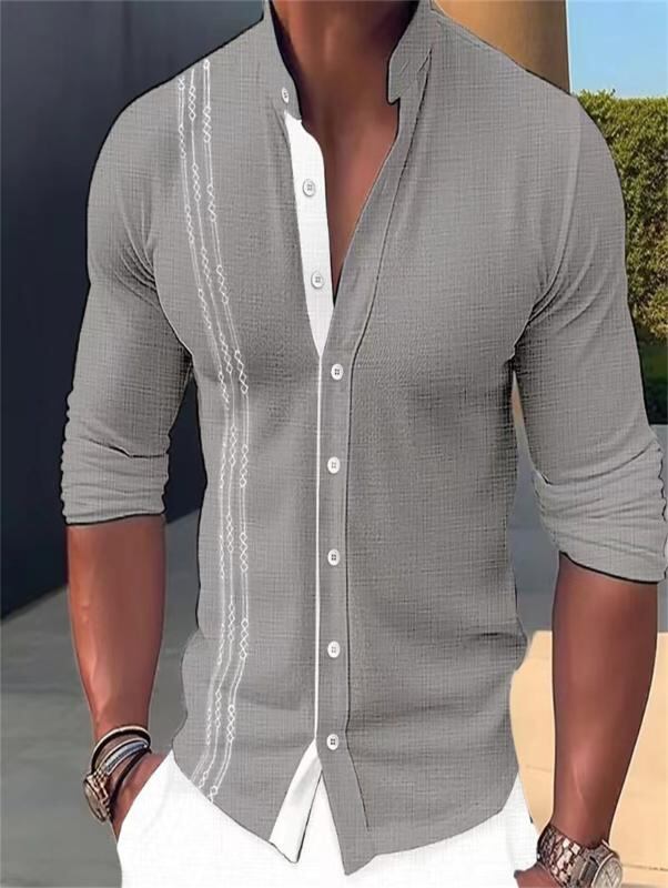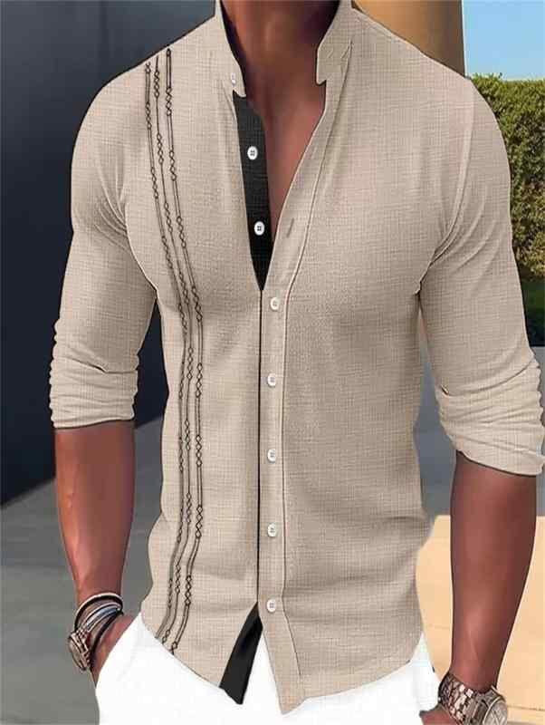 シャツ メンズ スタンドカラー 長袖 カーディガン風 切り替えデザイン 配色 刺繍 綿混 コットンブレンド ウォッシャブル カジュアル ストリート 普段使い オールシーズン対応
