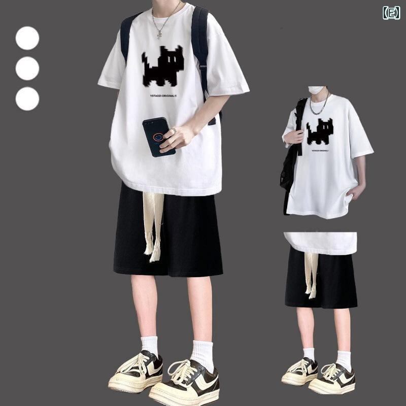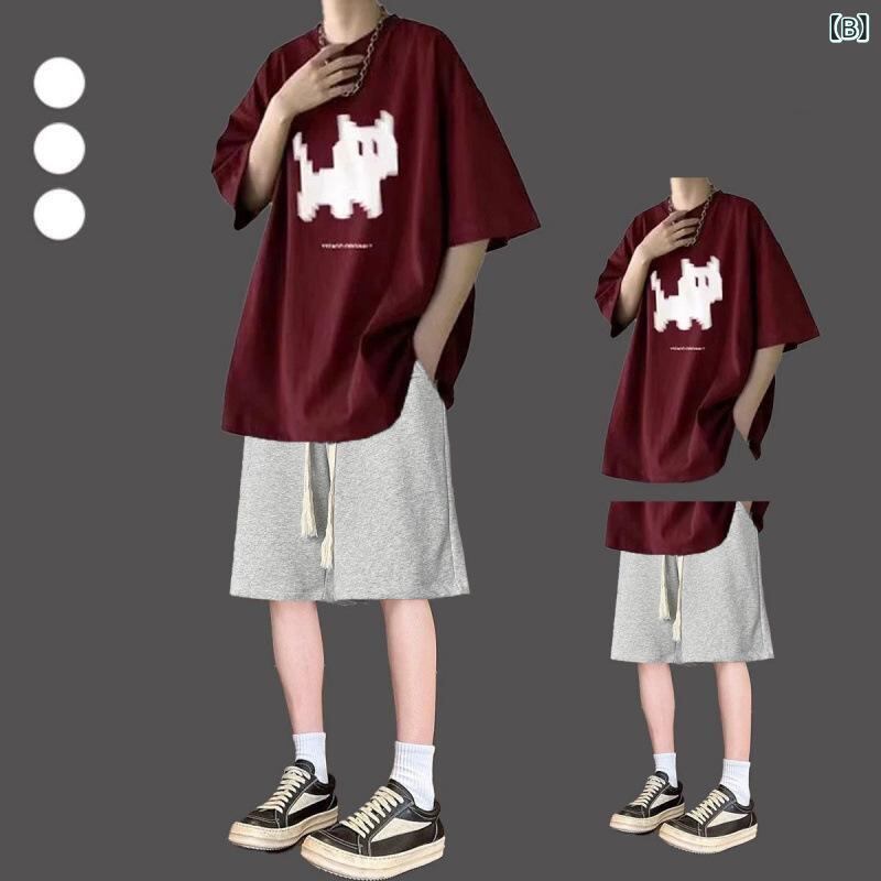 Tシャツ ハーフパンツ セットアップ メンズ 半袖 ショートパンツ 薄手 ポリエステル 2点セット カジュアル スポーツ 学生 普段使い 部屋着 軽量 スタイルアップ 細見え オールシーズン