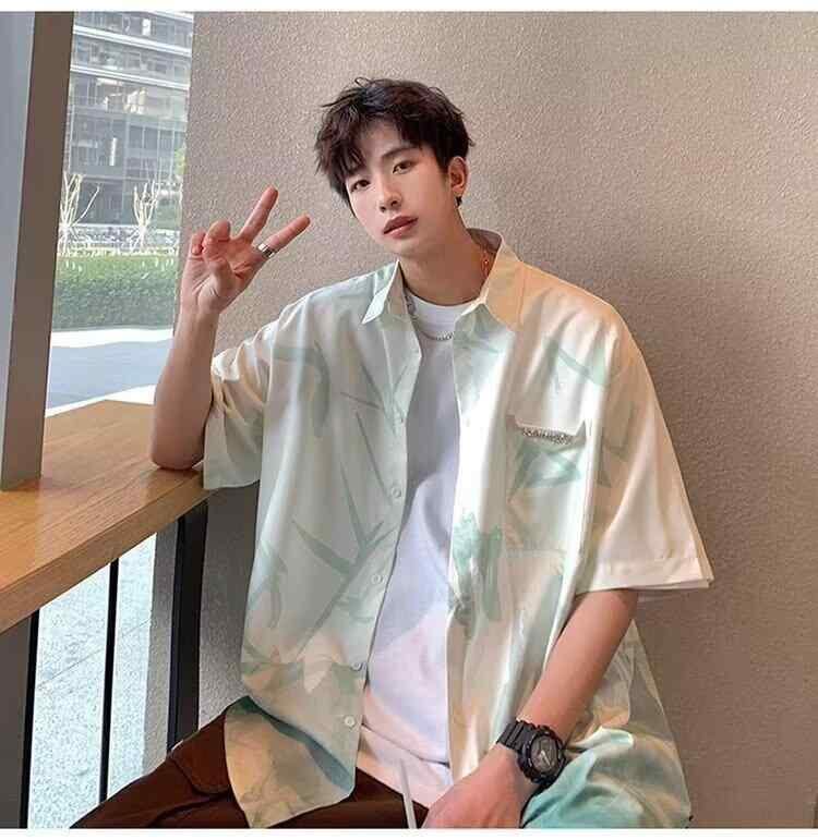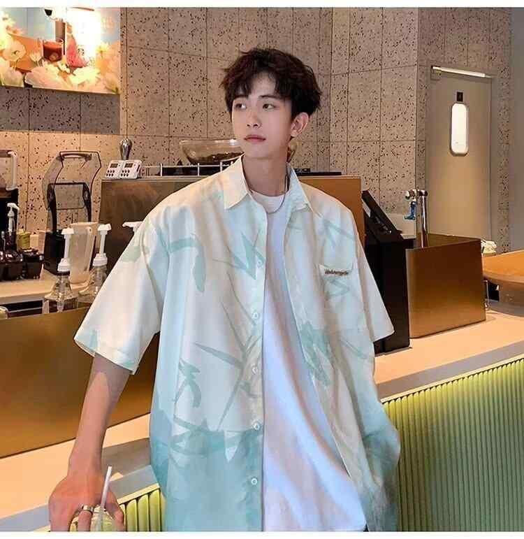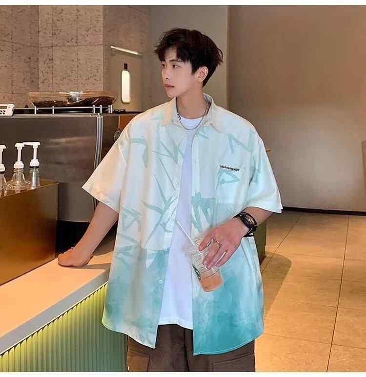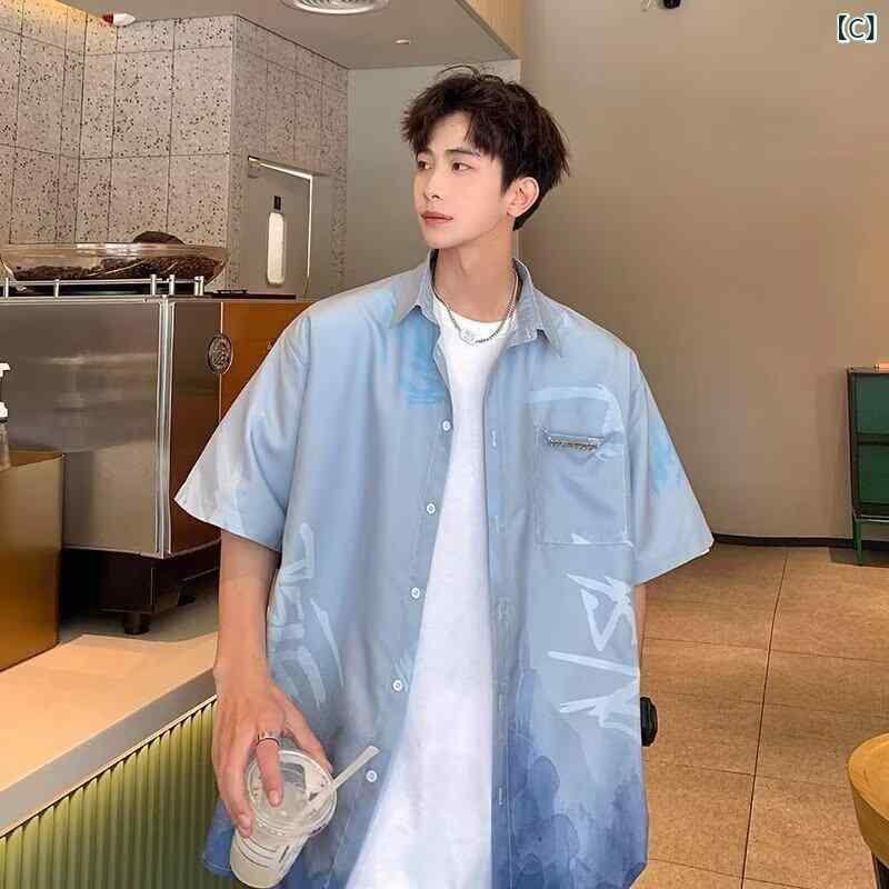 シャツ メンズ 水墨 グラデーション 半袖 ゆったり 開襟シャツ ポリエステル 接触冷感 薄手 通気性 夏 中華風 オリエンタル 高級感 カジュアル クール 普段使い 羽織り