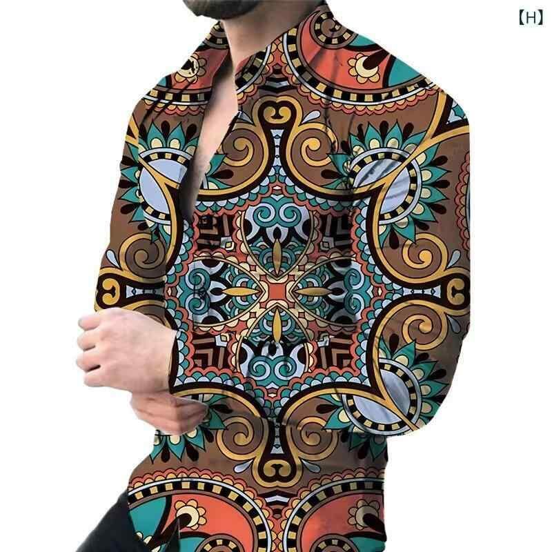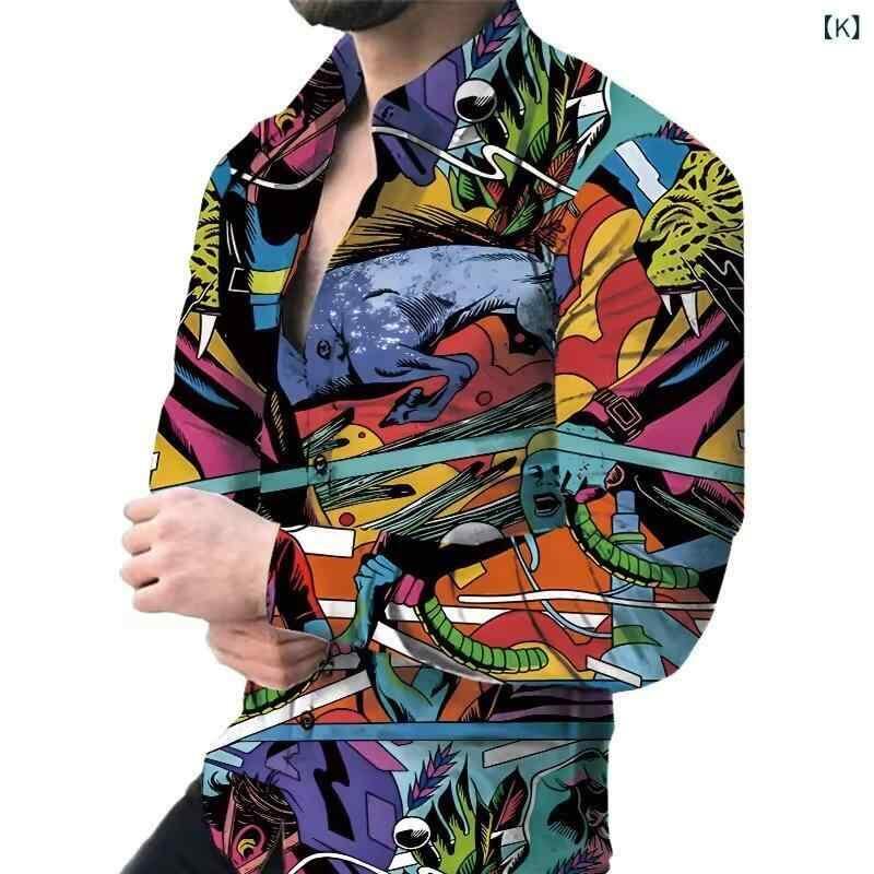 シャツ メンズ 男性用 長袖 ゆったり カジュアル ストリートファッション 3Dプリント 花柄 総柄 ビッグシルエット 高級感 ポリエステル 伸縮性 ストレッチ素材 春秋 春服 秋服 普段使い