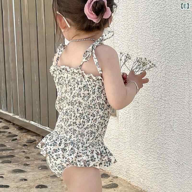 水着 女の子 ベビー キッズ スイムウェア ワンピース 背中開き バックレス かわいい 夏物 ナイロン素材 プール 海水浴 ビーチ リゾート 花柄 総柄 フルーツ柄 幼児 ガールズ