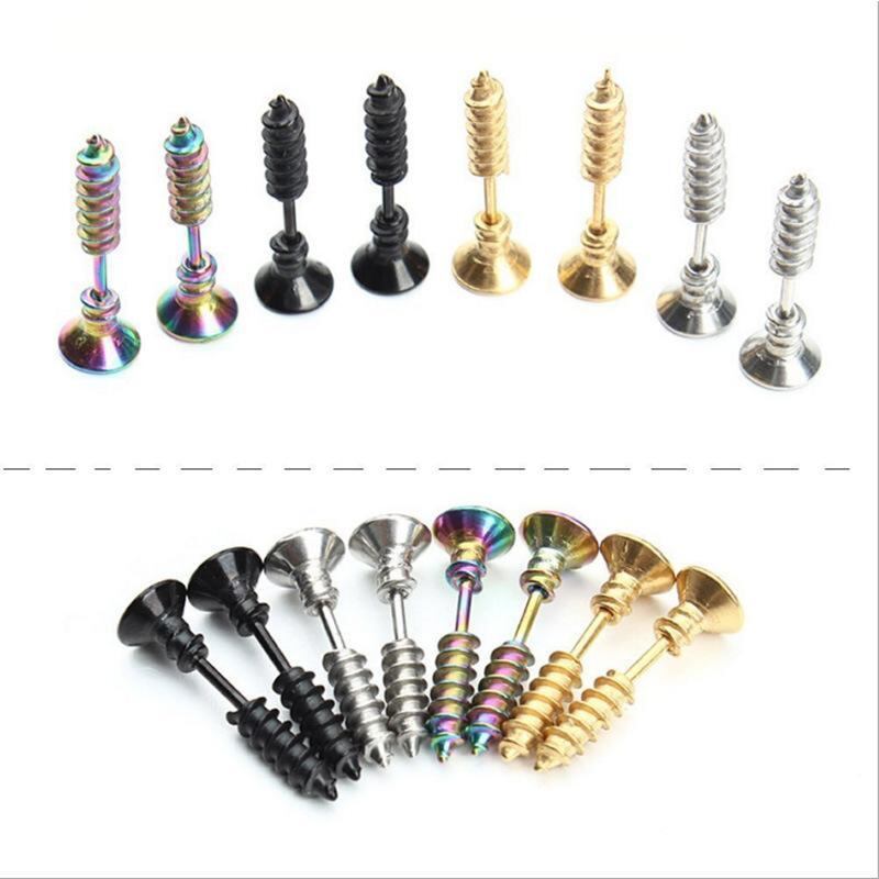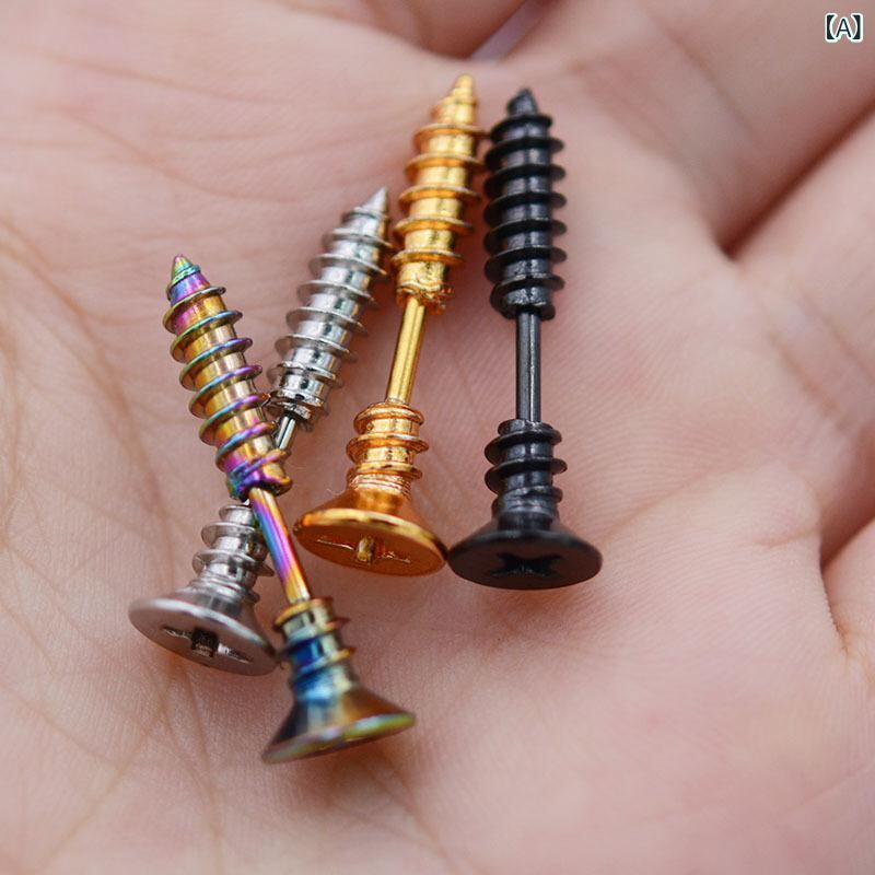 ピアス 男女兼用 ステンレス製 スクリューモチーフ シンプル 個性的 幾何学デザイン 欧米トレンド カジュアル ストリート イヤリング シルバー ゴールド ブラック ブルー ピンク カラフル