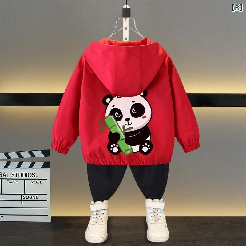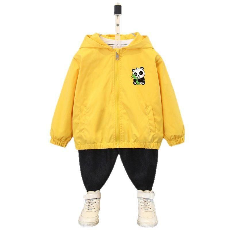 アウター 男の子 キッズ ウィンドブレーカー ジャケット フード付き 長袖 ジップアップ 春秋用 カジュアル ポリエステル ショート丈 柔らかい キャラクター柄 くま柄 アルファベット柄