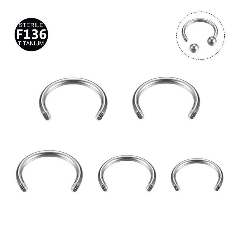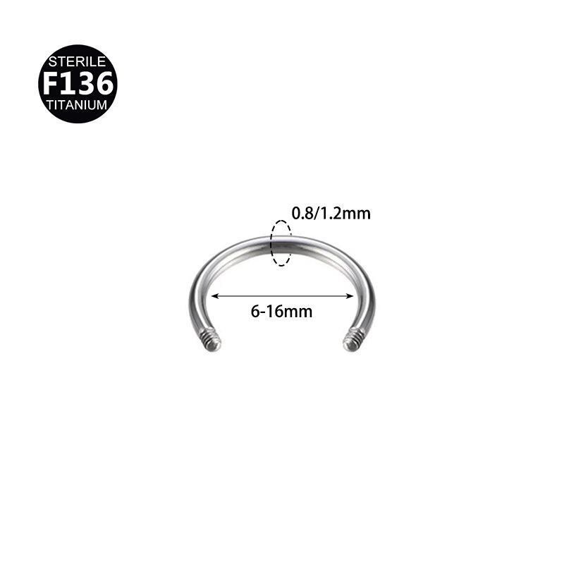 ボディピアス 男女兼用 G23チタン合金 馬蹄形 ホースシューリング U字 C型バーベル 外ネジ対応 金属アレルギー対応 軽量 高耐久 軟骨ピアス 耳 リップ 眉 0.8mm 1.2mm軸径 シルバー ボディジュエリーパーツ