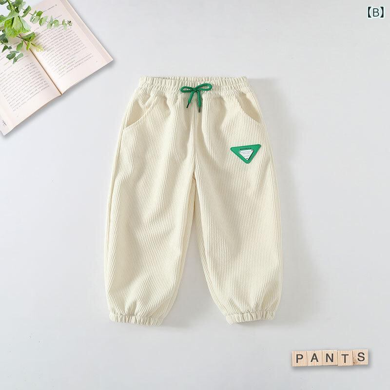 パンツ キッズ 男の子 女の子 コーデュロイ ポリエステル ロング カジュアル スポーツ スウェットパンツ 無地 春 秋 ブラック アプリコット