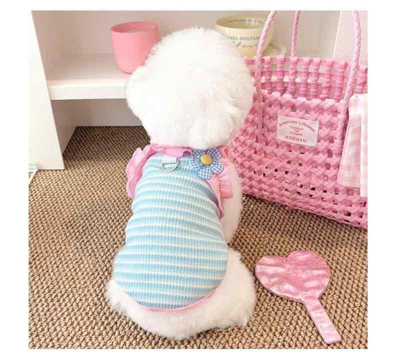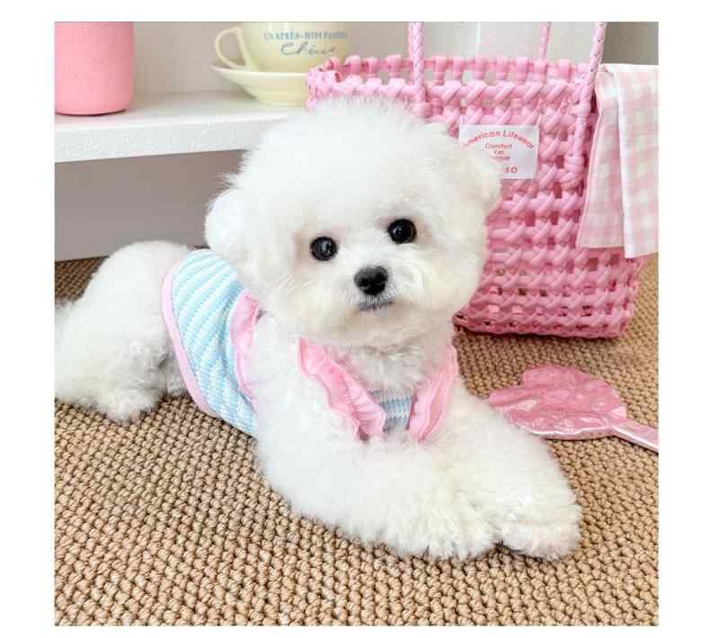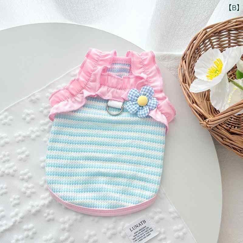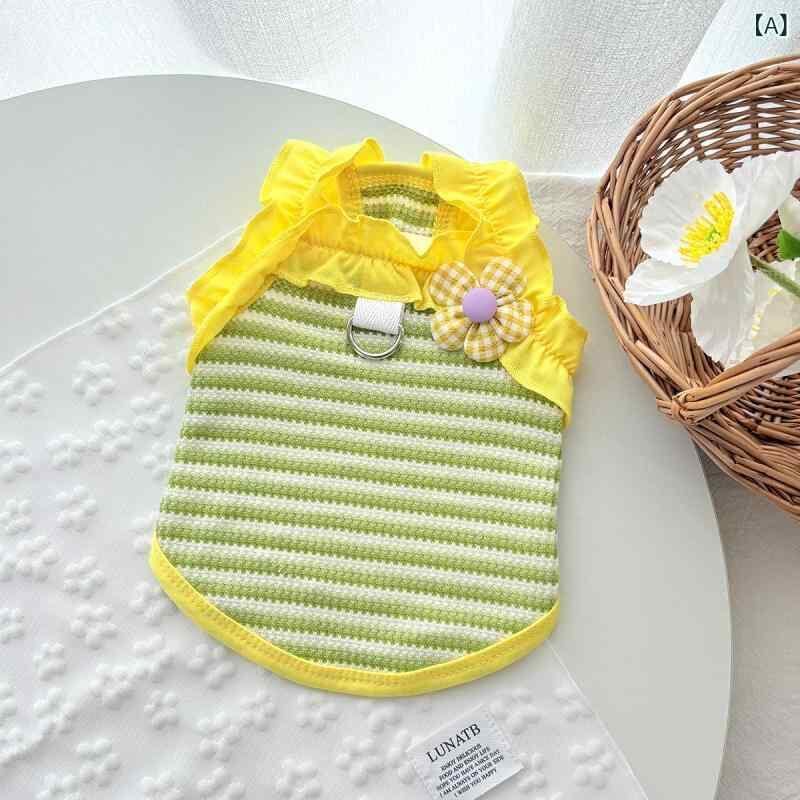 ペット服 犬猫用 タンクトップ ドーパミンカラー ストライプ柄 フリル袖 薄手 抜け毛防止 春夏秋 コットン製 通気性快適 小型犬 中型犬 カジュアル お散歩着