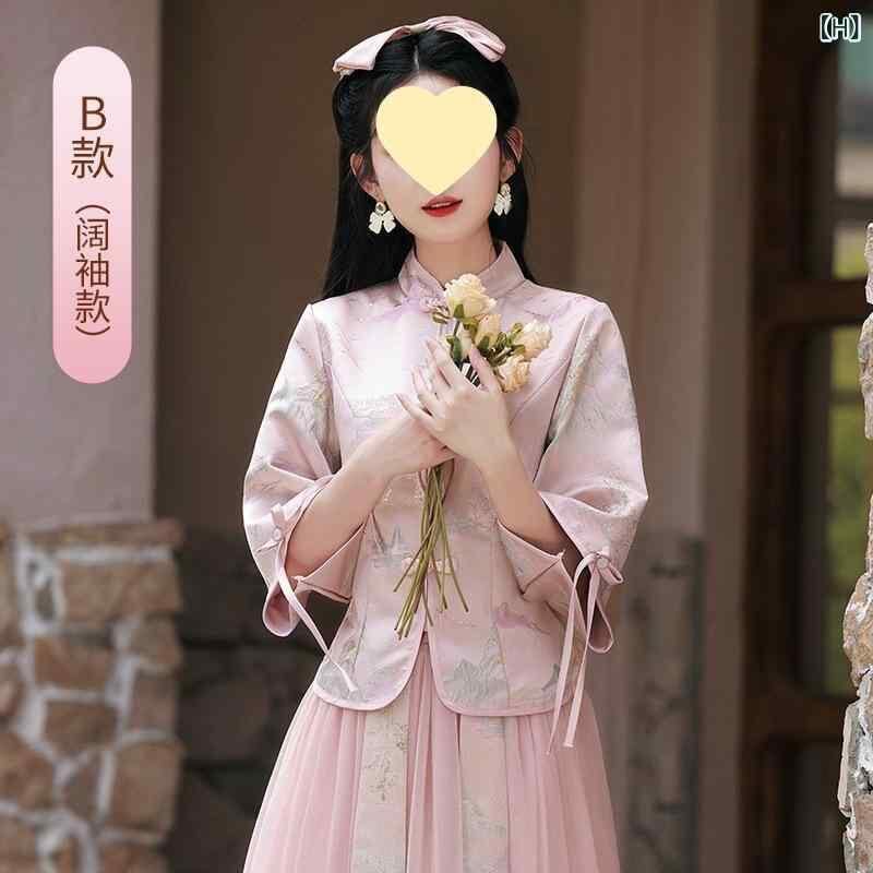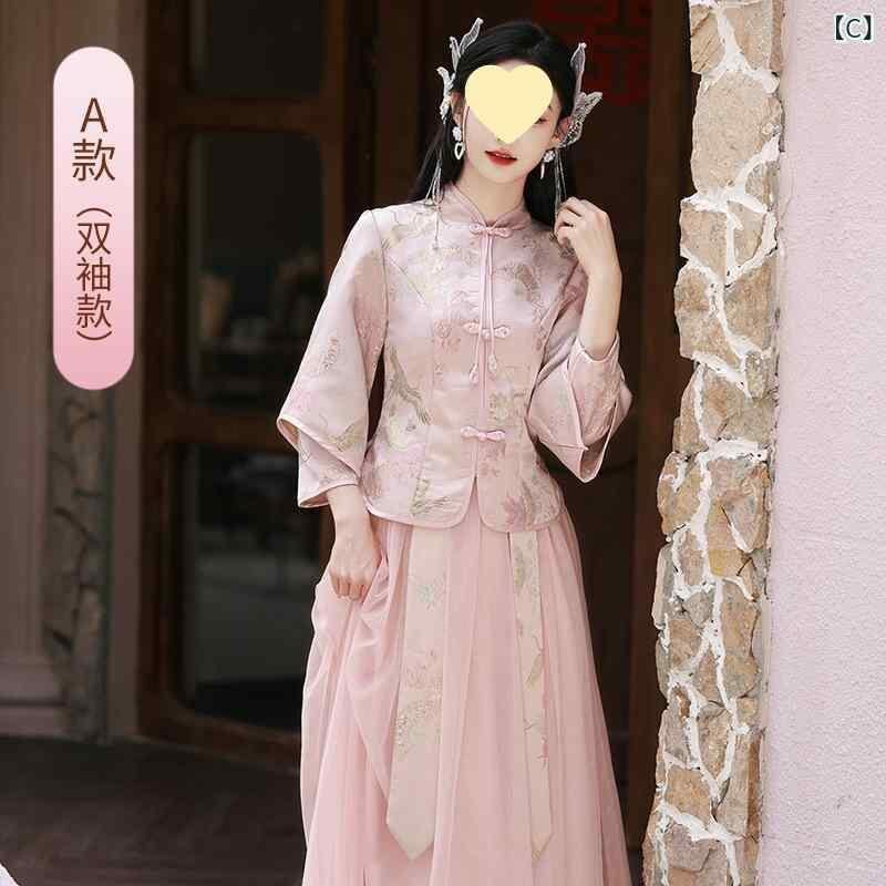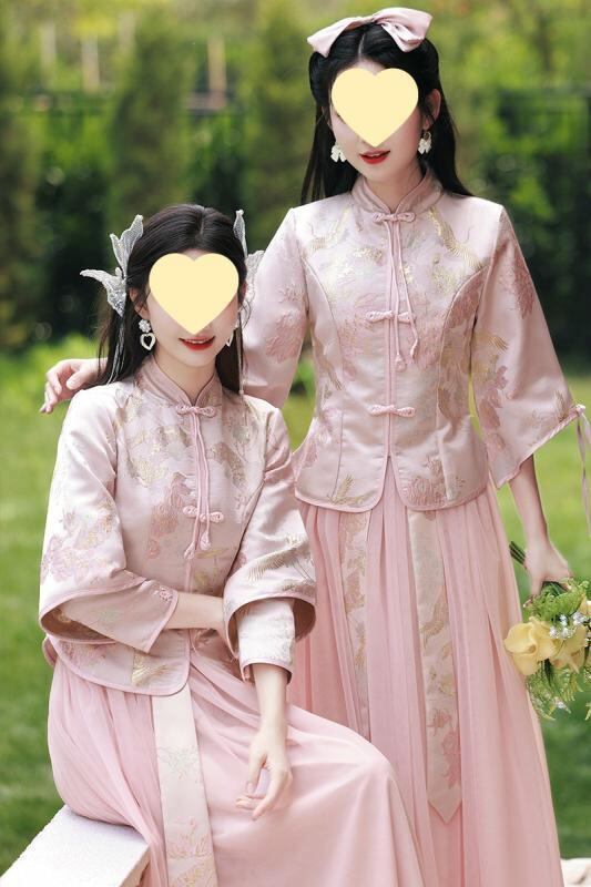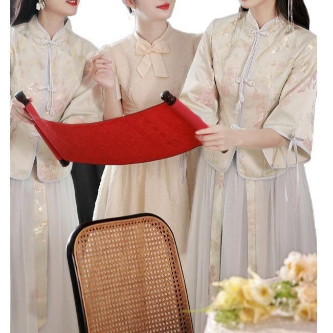 ドレス レディース 新チャイナ風 ブライズメイドドレス 結婚式 フォーマル パーティー ロング丈 長袖 ハイウエスト 着痩せ メッシュ チュール素材 ポリエステル グレー ピンク系 扇子柄 山水画柄