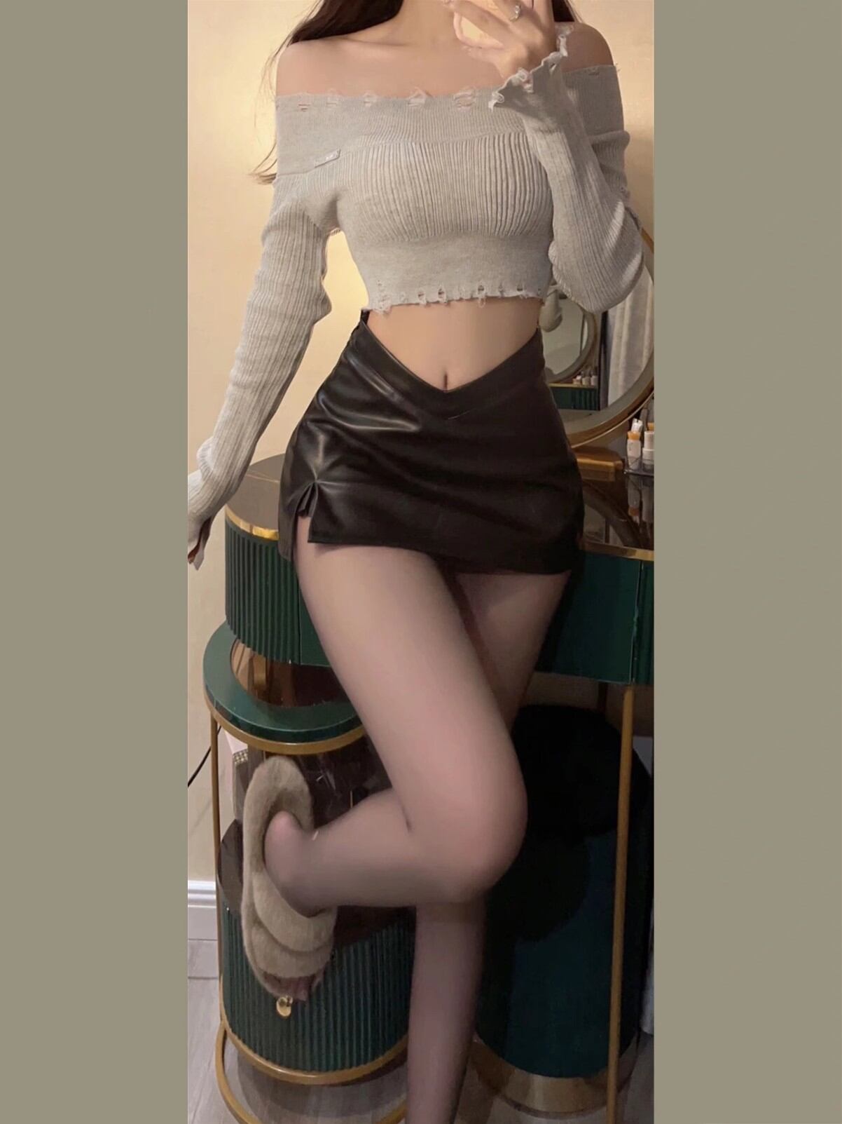 スカート レディース 大きいサイズ プラスサイズ ぽっちゃりさん PUレザー フェイクレザー 合皮 ミニ丈 ハイウエスト Aライン スリット タイトスカート 体型カバー 着痩せ効果 セクシー ギャル 大人かわいい ブラック 無地