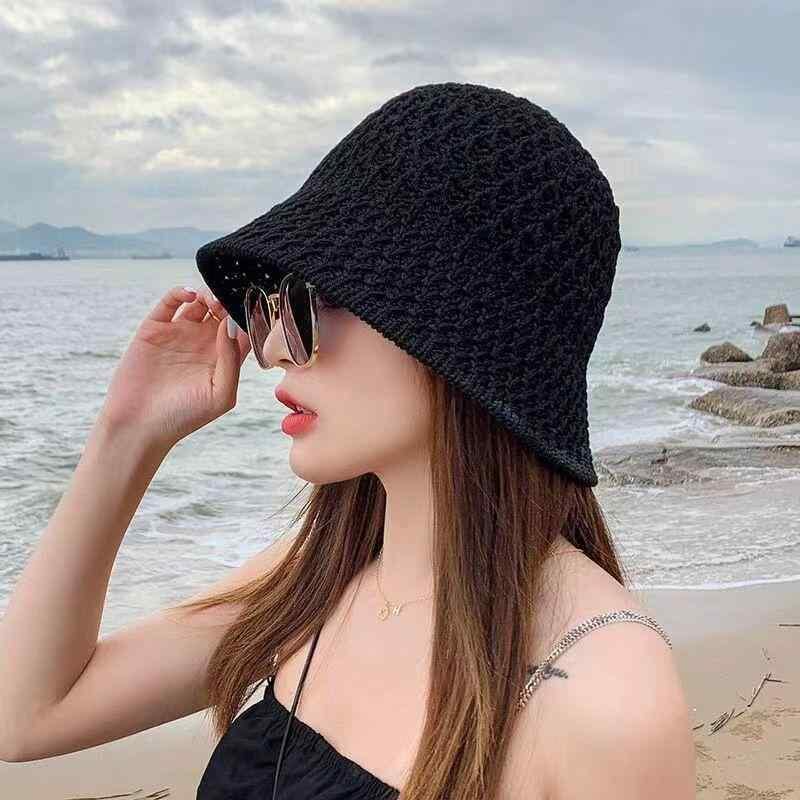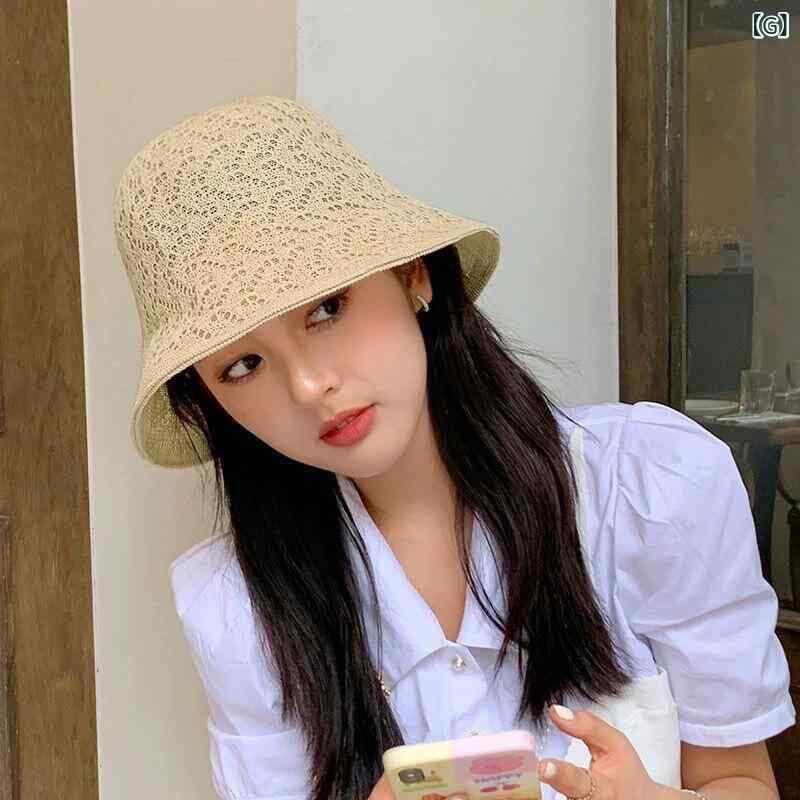 バケットハット レディース ニット 透かし編み 通気性 UVカット 紫外線対策 小顔効果 日よけ帽子 ポリエステル素材 おしゃれ 万能 日系カジュアル デイリーユース リゾート ラウンドトップ