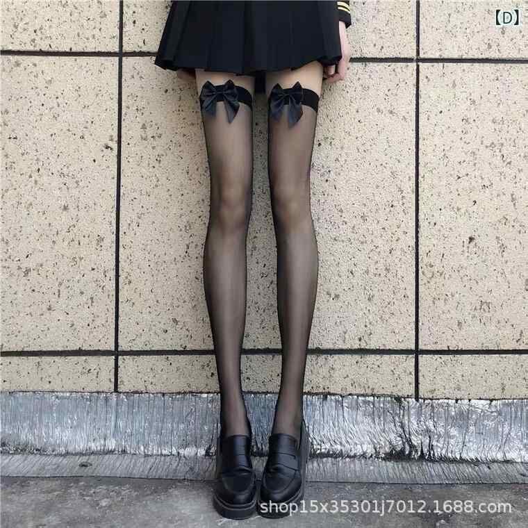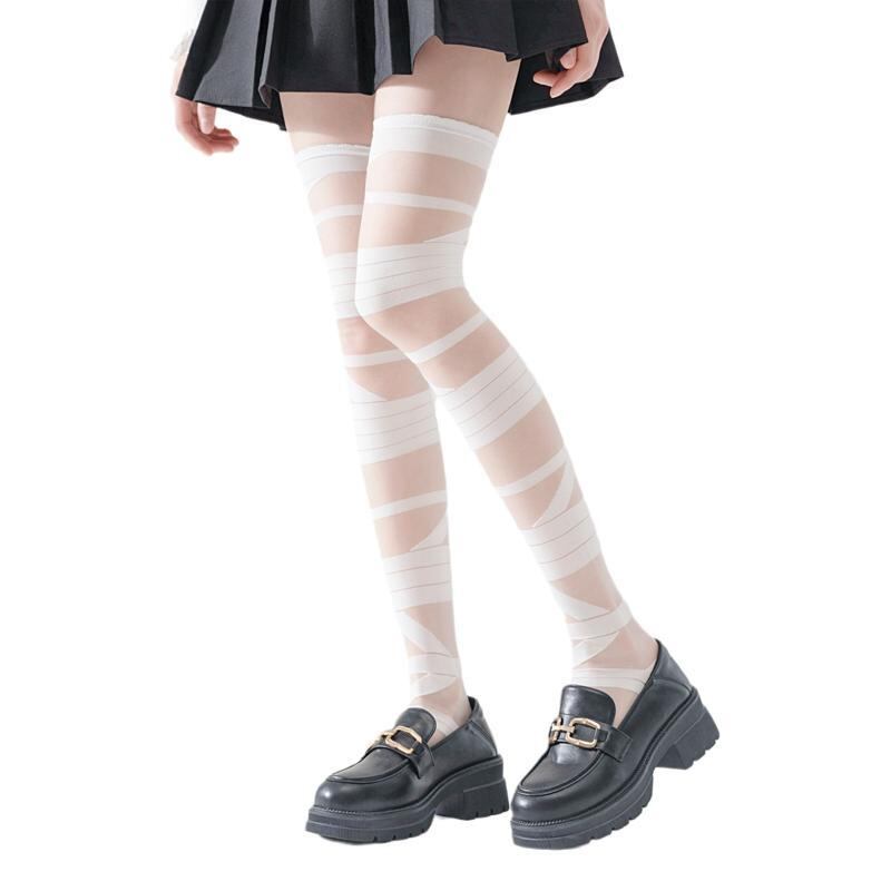 ニーハイソックス レディース ロリータ JKスタイル クロスストラップデザイン 甘辛 ソフトガール かわいい ストッキング 白 黒 薄手 美脚 ポリエステル