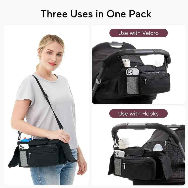 ベビーカー ベビー 多機能 大容量 吊り下げ 収納 オックスフォード生地 おむつ 哺乳瓶 バッグ フック付き ポケット 仕切り お出かけ 散歩 旅行 便利グッズ ブラック グレー ピンク 水色 ヒョウ柄 | cybercart