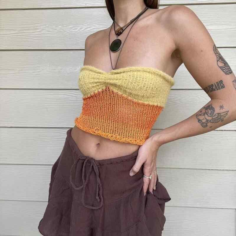 タンクトップ レディース 夏ニット ニットベスト 切り替え ビーチウェア ストリートスタイル クロップド丈