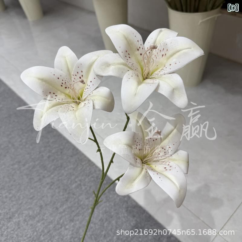 造花 百合 カサブランカ フェイクフラワー 立体リアル 手触り本物そっくり PU シリコン素材 インテリア ホームデコレーション ウエディング 撮影小物
