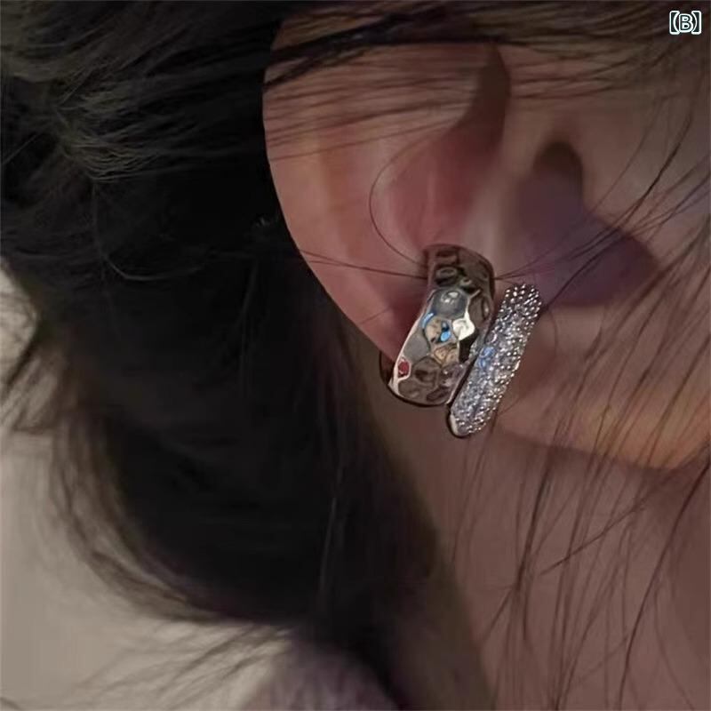 イヤーカフ 男女兼用 ノンホールイヤークリップ 耳に優しい メタル ダブルレイヤー ラインストーン 上品 高級感 ライトラグジュアリー U字形 ゴールド シルバー レトロ 幾何学デザイン メッキ加工 普段使い