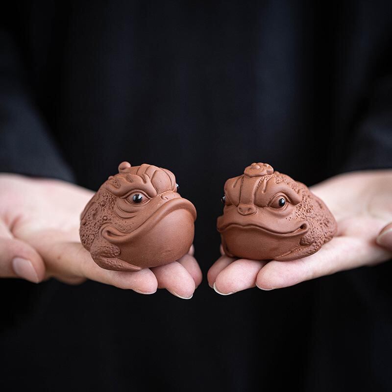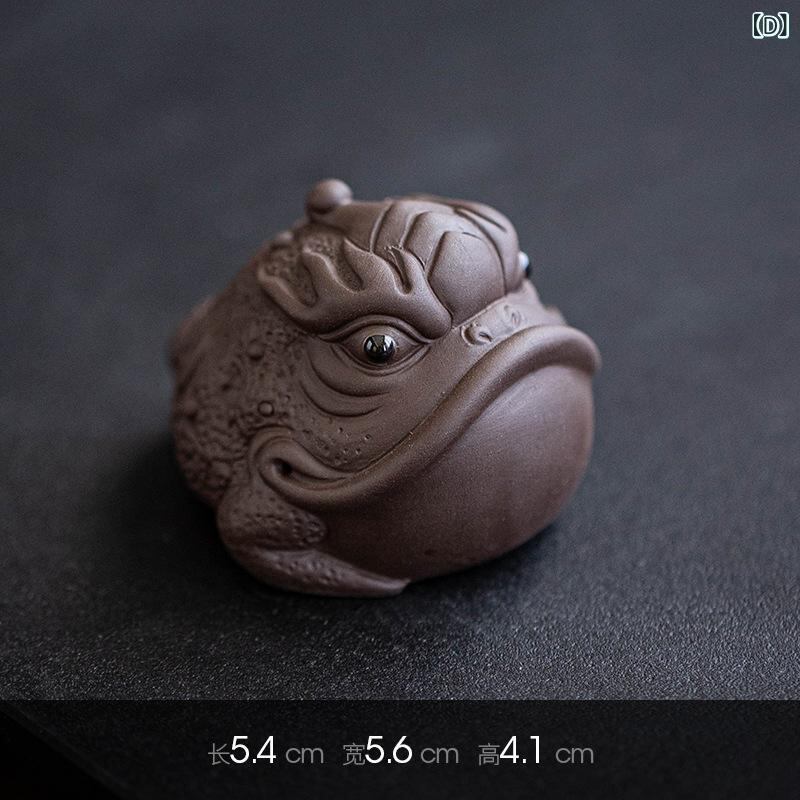 置物 ミニ 金運カエル 三本足ヒキガエル 紫砂 陶器製 開運 金運招来 財運アップ 縁起物 風水グッズ 卓上飾り リビング デスク 玄関 アニマルモチーフ オブジェ インテリア小物 モダン 和風 プレゼント 贈り物 ギフト 記念品