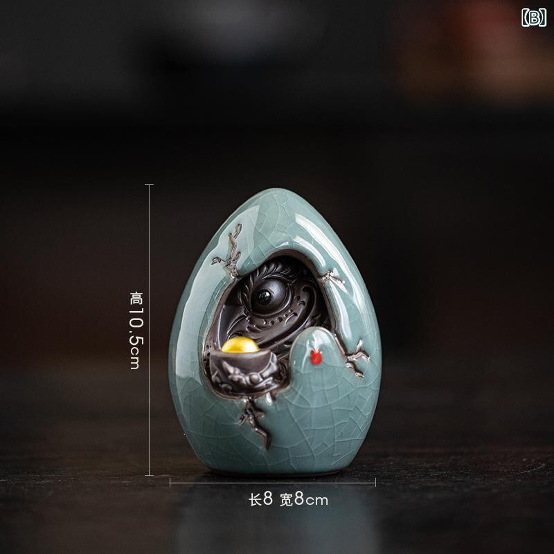 茶寵 陶器製 龍の卵 置物 開運 招財 ラッキーアイテム 縁起物 昇龍 茶卓 茶台飾り インテリア オブジェ 動物モチーフ 中国風