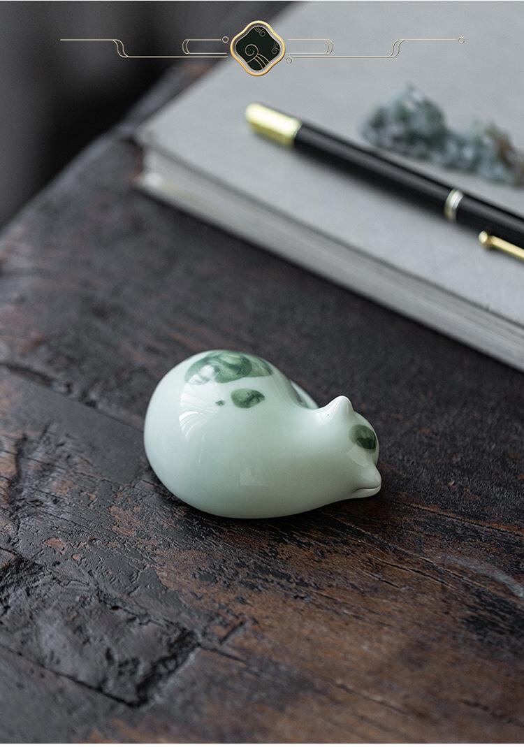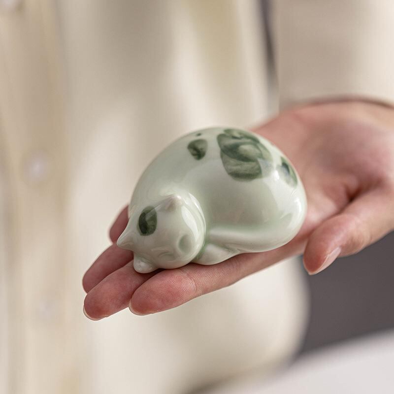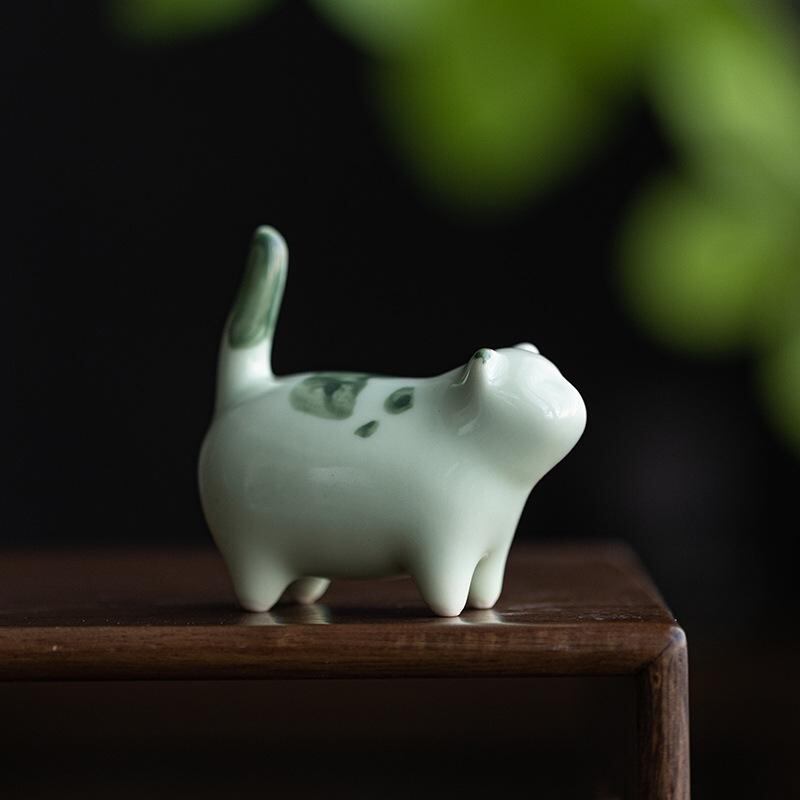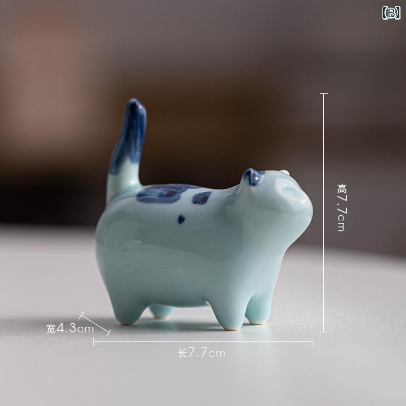 置物 かわいい 猫 オブジェ 陶器製 セラミック アニマル 癒し系 開運 招福 縁起物 リビング 卓上 デスク インテリア 飾り 青系 カートゥーン風